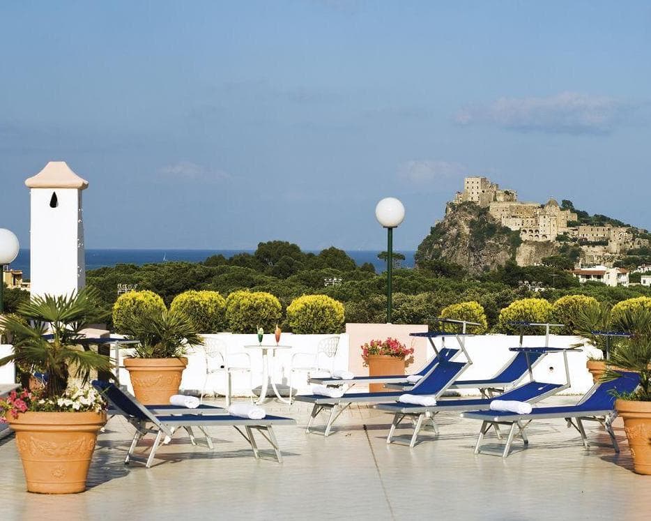Terme & Benessere reparto beauty con possibilità di effettuare massaggi e trattamenti viso e corpo, con prodotti cosmetici naturali a base di acqua termale e fanghi dell’isola. Piscina termominerale coperta con idromassaggio e cromoterapia; sauna naturale/bagno turco. Possibilitàdi cure termali presso struttura esterna (convenzionata SSN) a ca. 400 m con servizio navetta gratuito.
